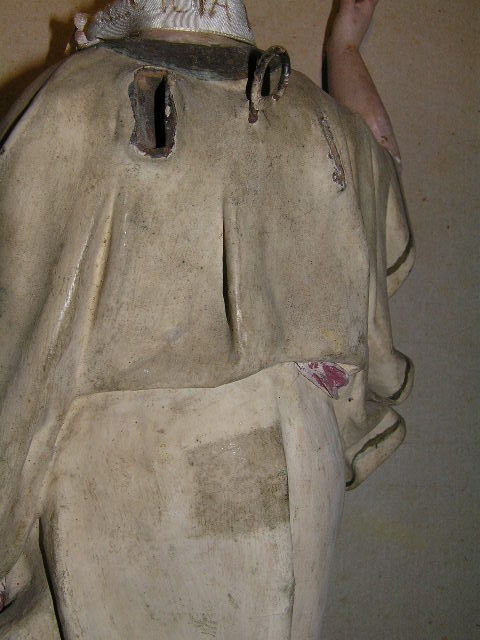 Le mancanze e rotture dei personaggi sono state rintegrate con stucco a base di gesso e colla di coniglio,  poi ritoccate con colori a vernice per restauro.